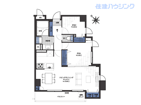 - / 約56.38 約3.35m2 / 2LDK