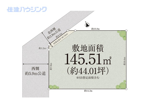 - 【敷地面積】約44.66㎡ 【延床面積】約98.07㎡