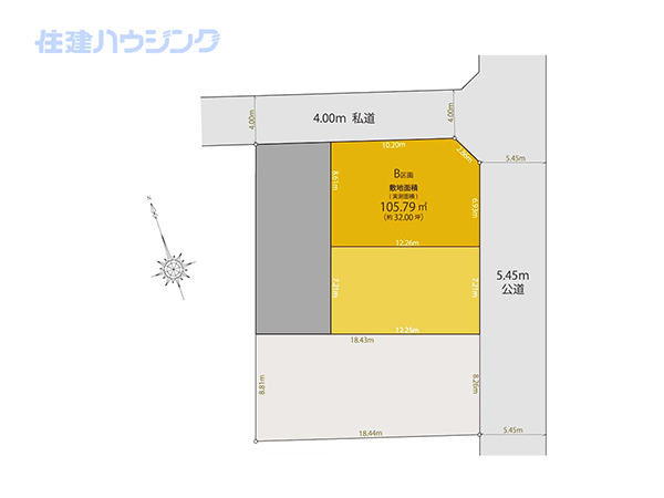 - 【敷地面積】約60.69㎡ 【延床面積】約87.92㎡
