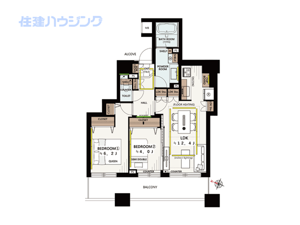 - / 約59.12 約12.56m2 / 2LDK