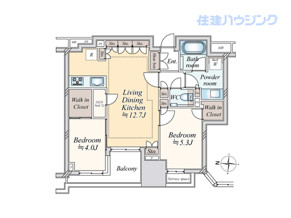 【おすすめポイント】 都心の街並みを望む開放感ある眺望が魅力の2LDK。LDKは約12.7帖でゆとりの空間設計。各室に収納を備え、家事動線にも配慮した間取りです。オートロックや宅配ボックスなど共用設備も整い、快適な暮らしをサポートします。