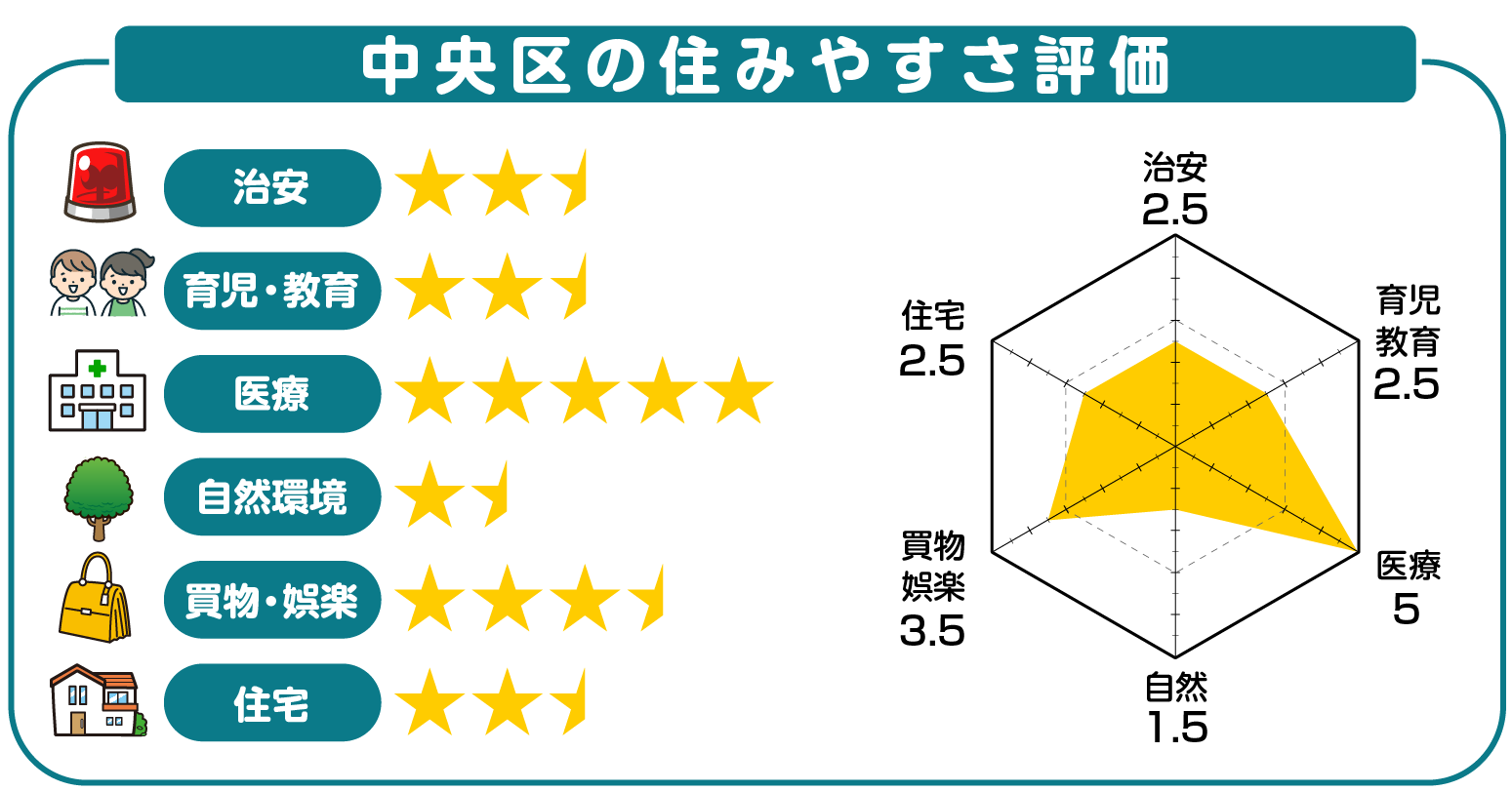 中央区の住みやすさ