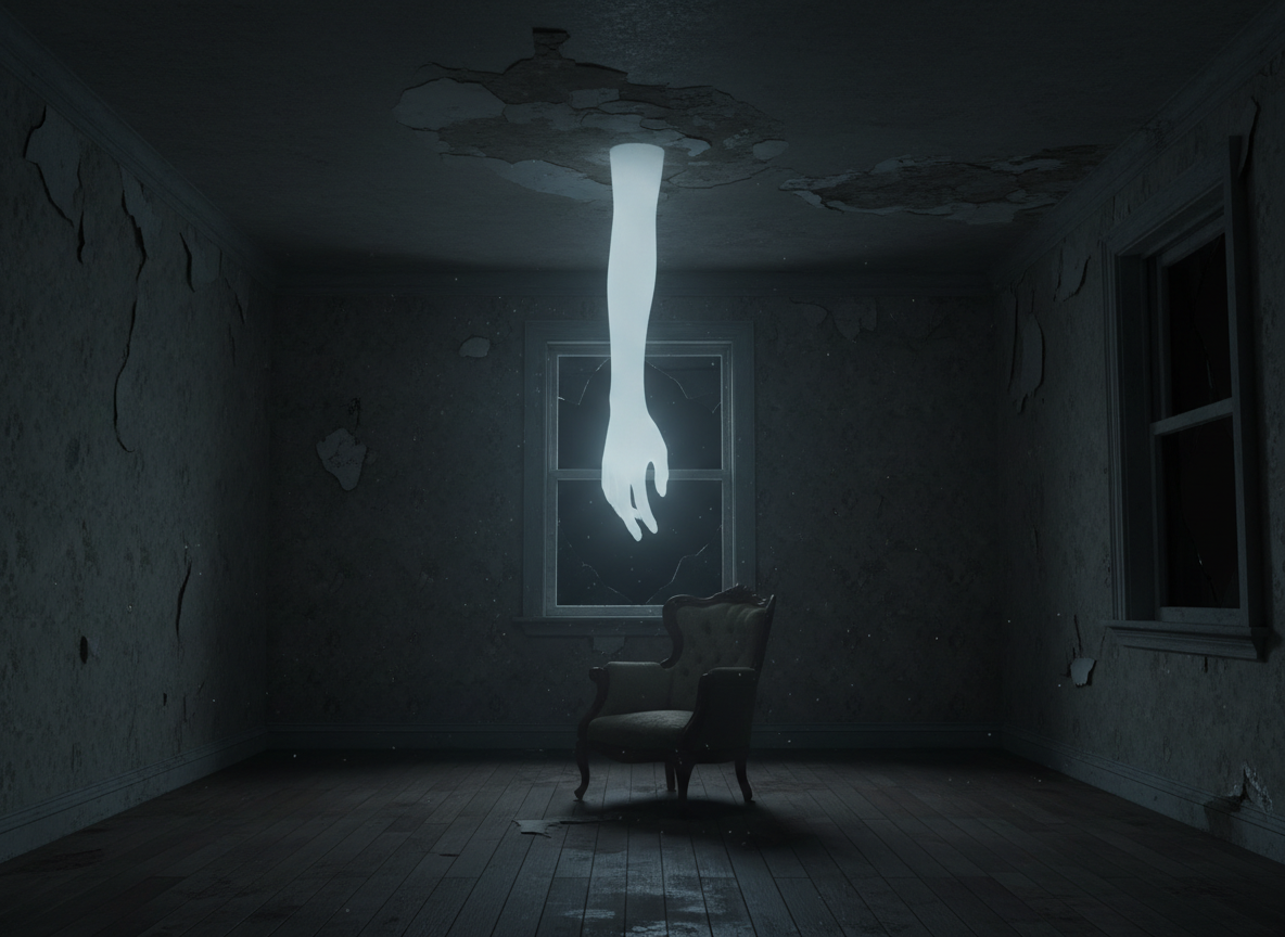 稽古場として使われているこの場所では、鏡から突き出る白い手、空中を舞う物、誰もいないのに鳴り響く足音などが日常的に発生しています。