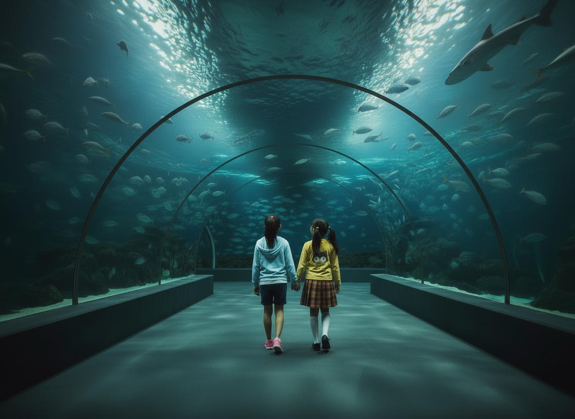 頭上を魚が泳ぐ有名な「トンネル水槽」で、閉館間際に誰もいないはずなのに、仲良く手をつないで歩く2人の女の子の姿を見たという職員や警備員の噂が、SNSや掲示板で定期的に書き込まれます。